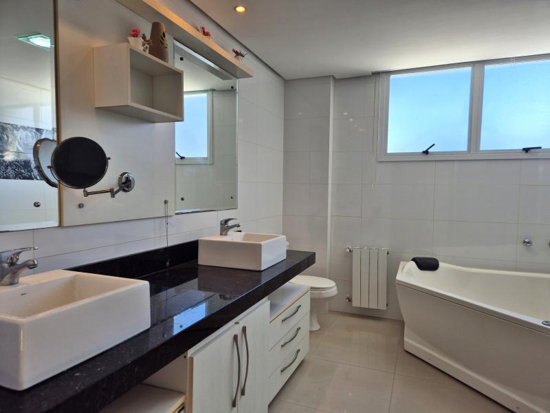 Uma suíte master, com banheira de hidromassagem